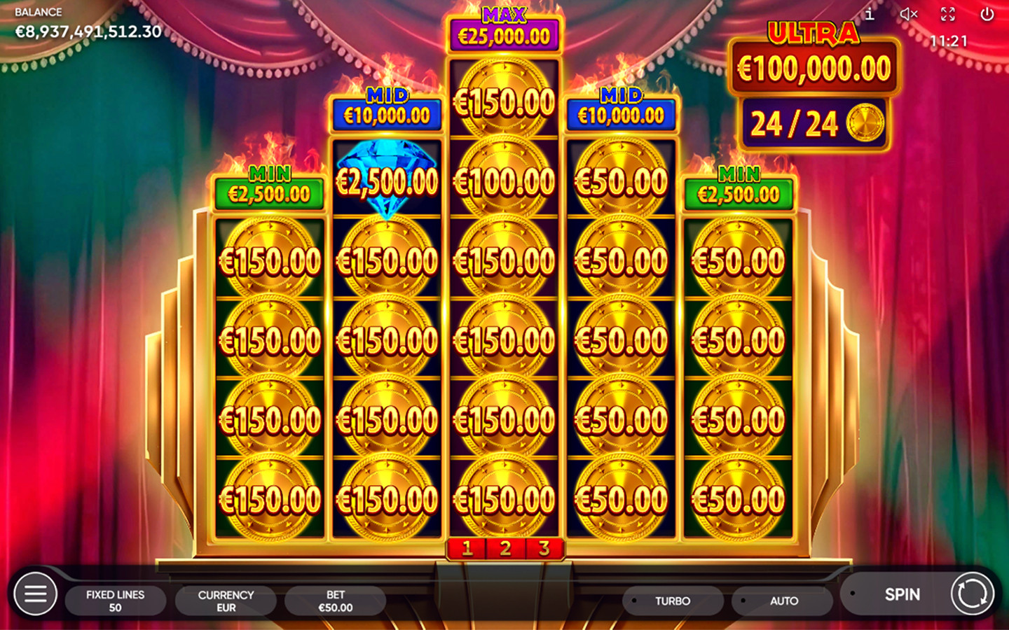 Every extra moment on stage brings the chance to trigger multiple Bonus types simultaneously, including the Extended Hit Hold variations with towering column prizes and Min, Mid, Max, and Ultra jackpots rising up to 2000x the total bet.