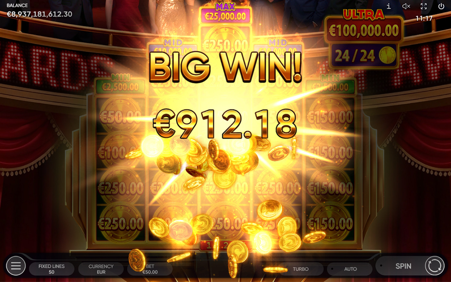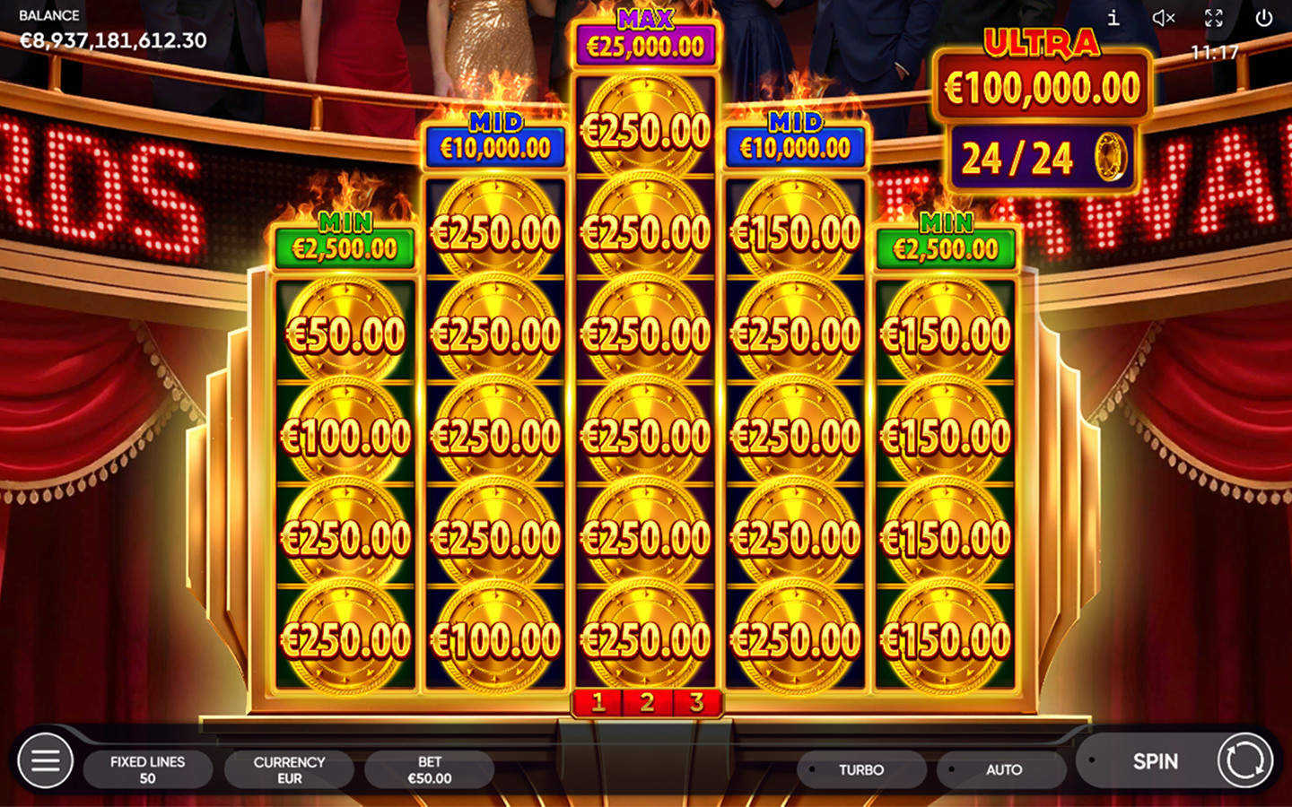 Bonus symbols stay focused, Collector symbols hoard every starry prize, and Payer symbols radiate their personality across the grid, enhancing all Oscar-winning rewards.