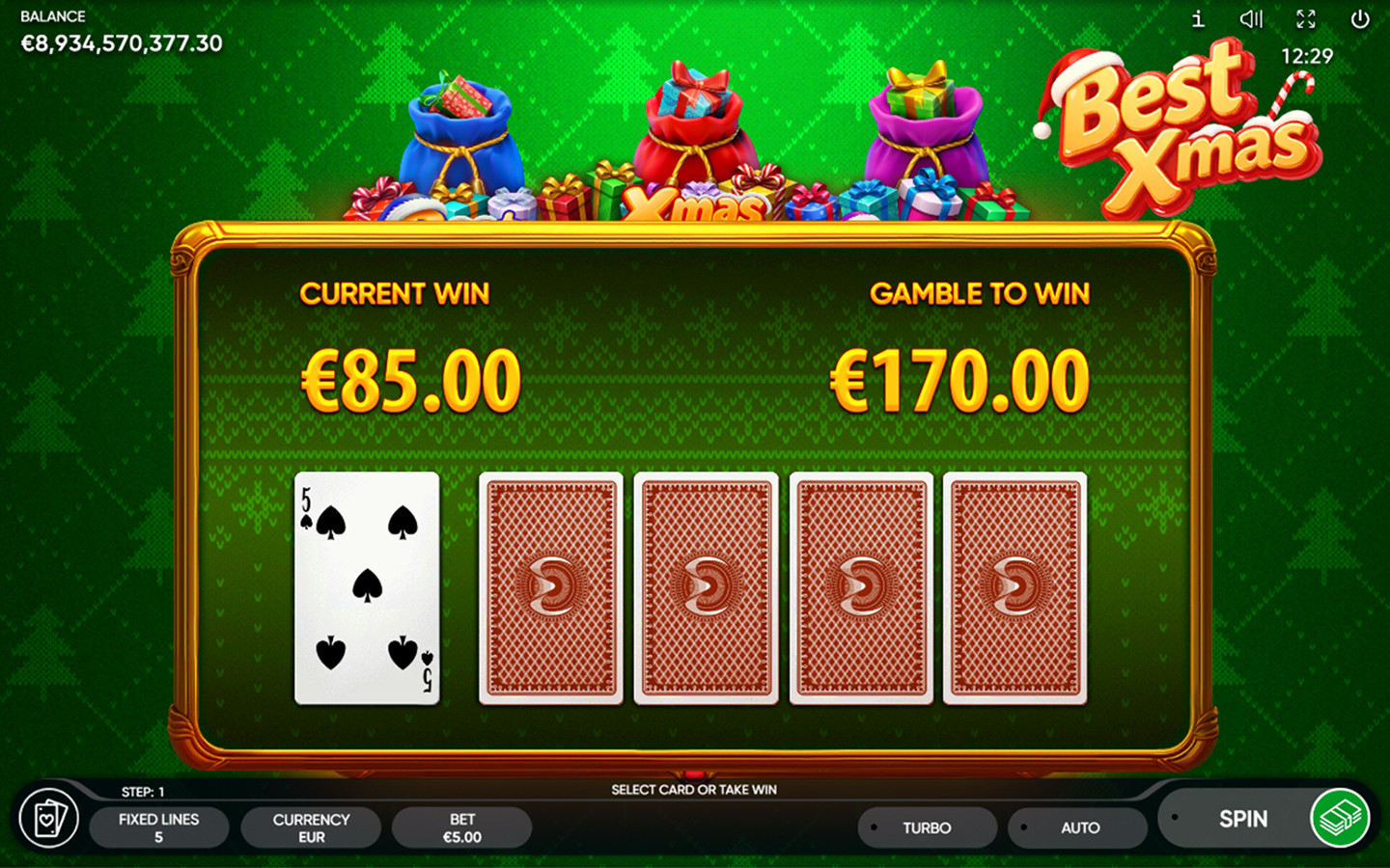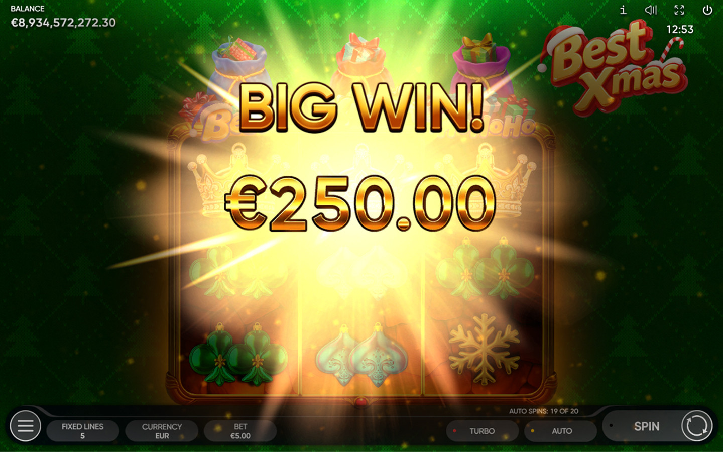 - Xmas Bonus Pick Me – may be triggered by the red bag. As the Bonus begins, 18 gifts appear on the screen, each one hiding a grand star symbol or a regular prize of up to 50x total bets. Collecting 3 grand stars awards the GRAND STAR JACKPOT of 500x total bets.