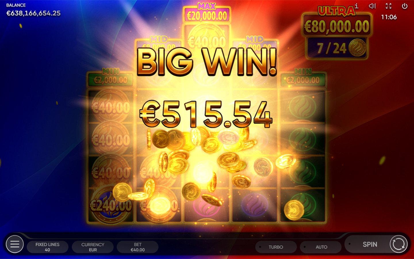 In this 5-reel, 4-row slot with 40 fixed paylines, the cave reveals its power through multiple Hot Hold Bonus variations. Special Burning Coins unlock different challenges, each transforming the reels into a grid where Bonus, Collector, and Payer symbols ignite treasures up to x25 the total bet. Bonus symbols remain fixed, Collector symbols absorb every blazing prize, and Payer symbols spread their magic across the grid, enhancing all existing rewards. Every step deeper into the cavern brings the chance to trigger multiple Bonus types simultaneously, including the Extended Hot Hold variations with towering column prizes and jackpots rising up to 2000x the total bet.