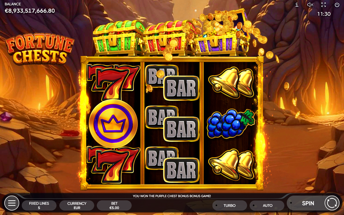 Discover the legend of the three Fortune Chests in our newest 3-reel, 3-row slot with 5 fixed paylines. The main attraction of the game? The three Fortune Chests, each hiding a special treasure: Pick Me, Hold & Win, and a Jackpot Collecting Bonus Game! Your mission is simple but exhilarating: open the chest!